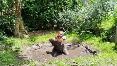 Well this time I get down and Muddy wearing jeans, long knee high white socks, shoes and a top. I roll around playing in the mud.