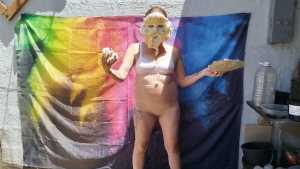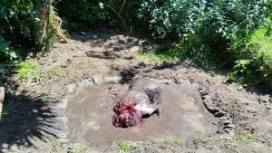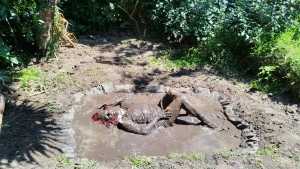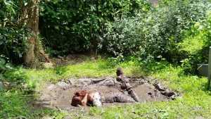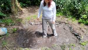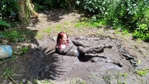 Dressed up in a skirt, white shirt, white socks and penny loafers I make sure I get completely covered in mud.
