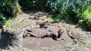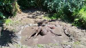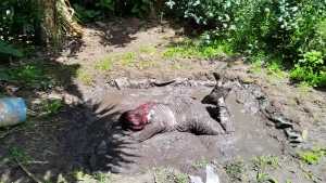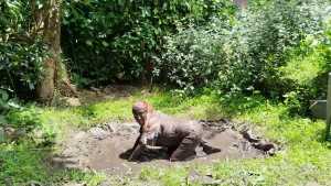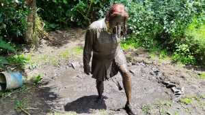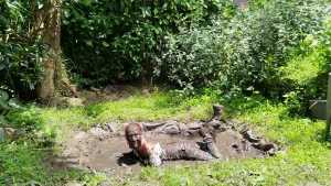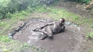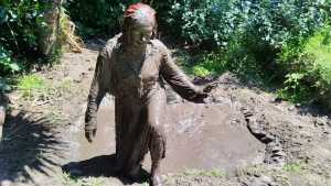 Wearing white shorts, white top, white socks and penny loafers I get completely covered in mud.