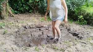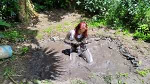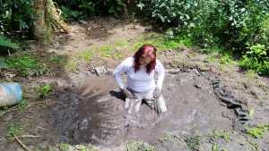 Wearing shorts, white top, white socks and penny loafers I get super muddy and really enjoying getting covered completely.