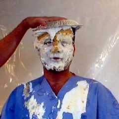 Pieguyss was surprised by Seangunge with a big sloppy cream pie to the face